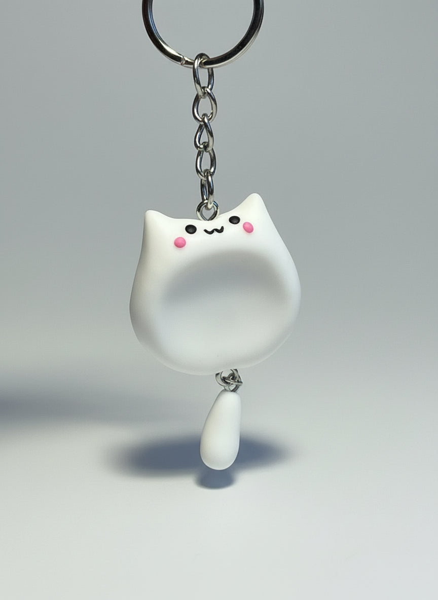 Tack vare den kompakta storleken och den robusta nyckelringen kan du enkelt ta med dig katten överallt: på väskan, i fickan eller tillsammans med dina nycklar. En charmig, diskret och mysig liten vän som hjälper dig att hitta lugnet, var du än är.